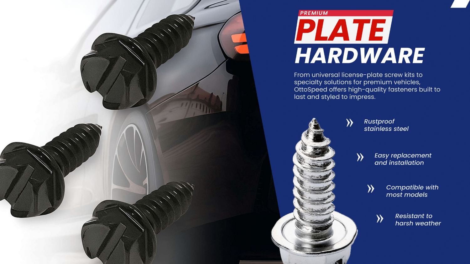 Black License Plate Screws for Domestic Vehicles - Rustproof Stainless Steel (Set of 4)