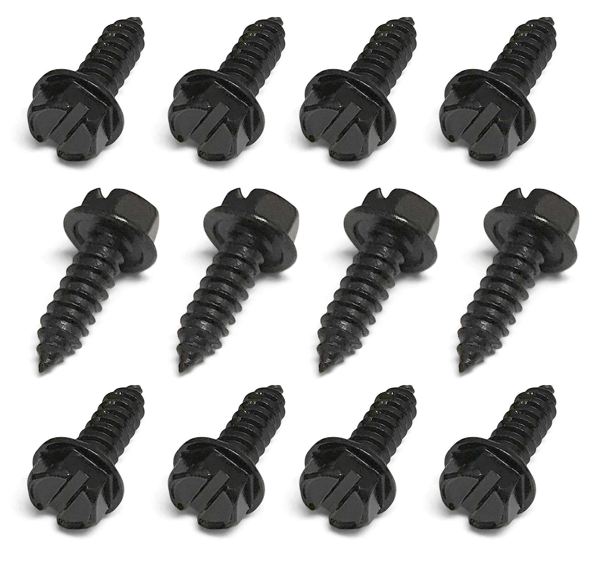 - EVERYTHING YOU NEED: This set of fasteners includes 12 black slotted hex-head screws with a 1/4 inch (.25") diameter and 3/4 inch (.75") long self tapping shank. They are perfect for the front or back license plate and frames or covers of most domestic make cars.